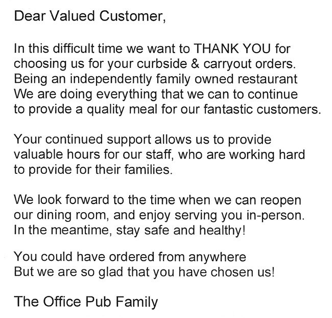 Office Pub Menu